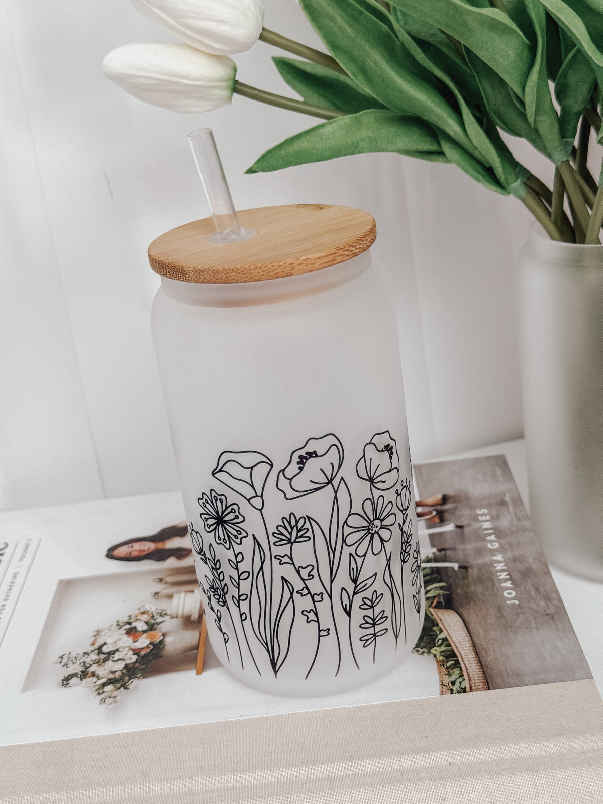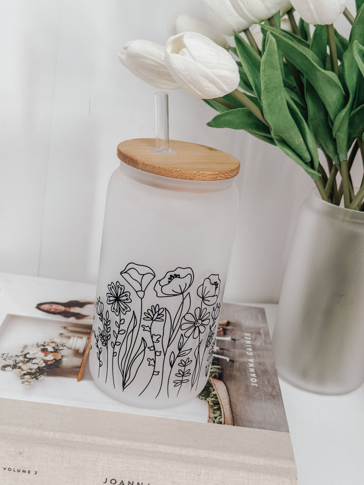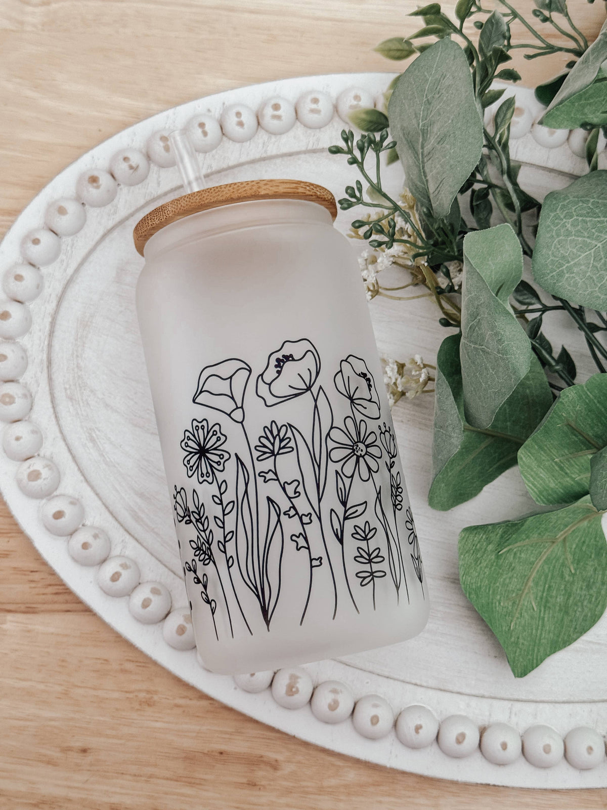 Wildflowers Frosted 16oz Glass Cup with Bamboo Lid